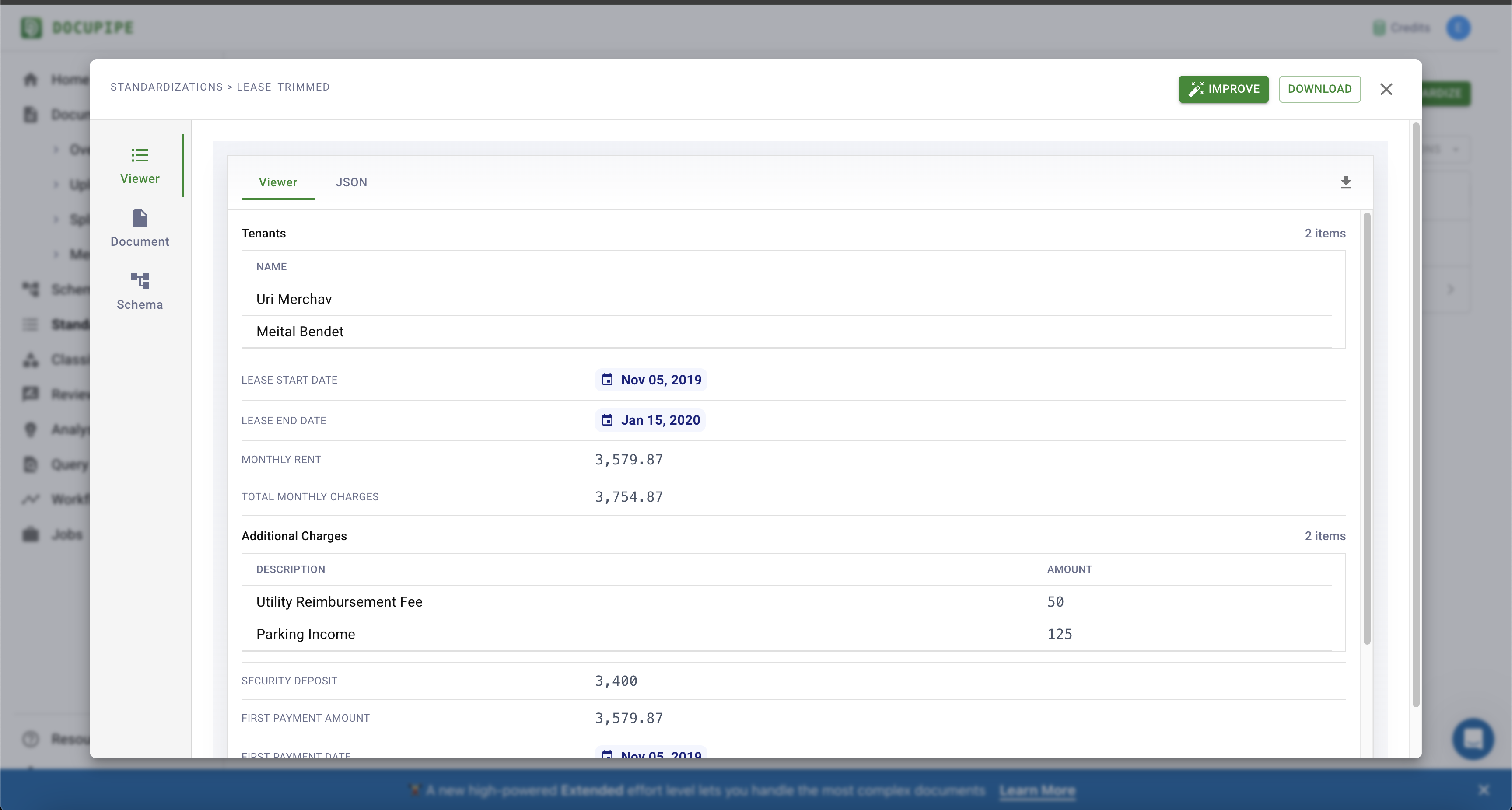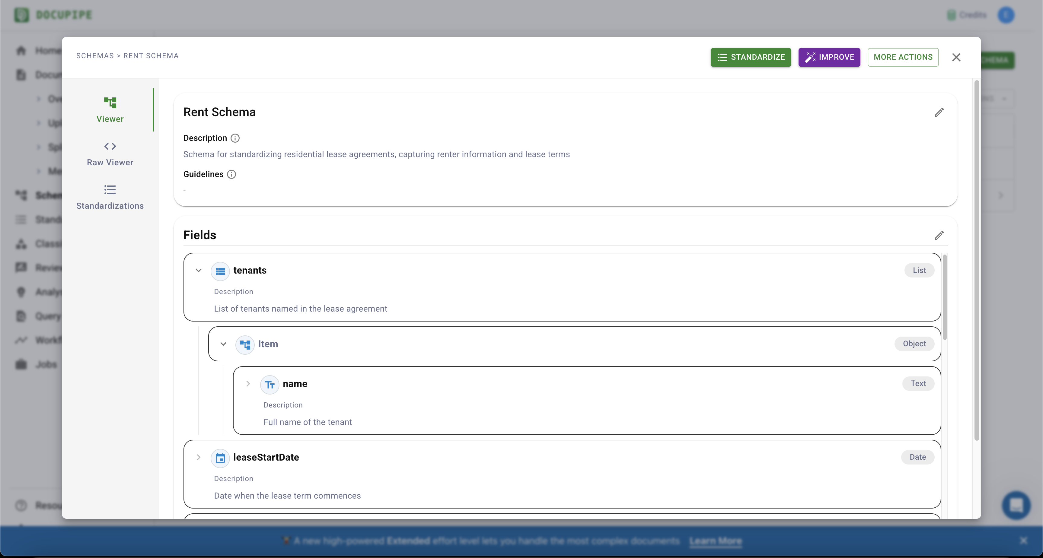 This tutorial will follow along a toy problem of standardizing rental leases. You can follow along with our example, or extract a completely different document.