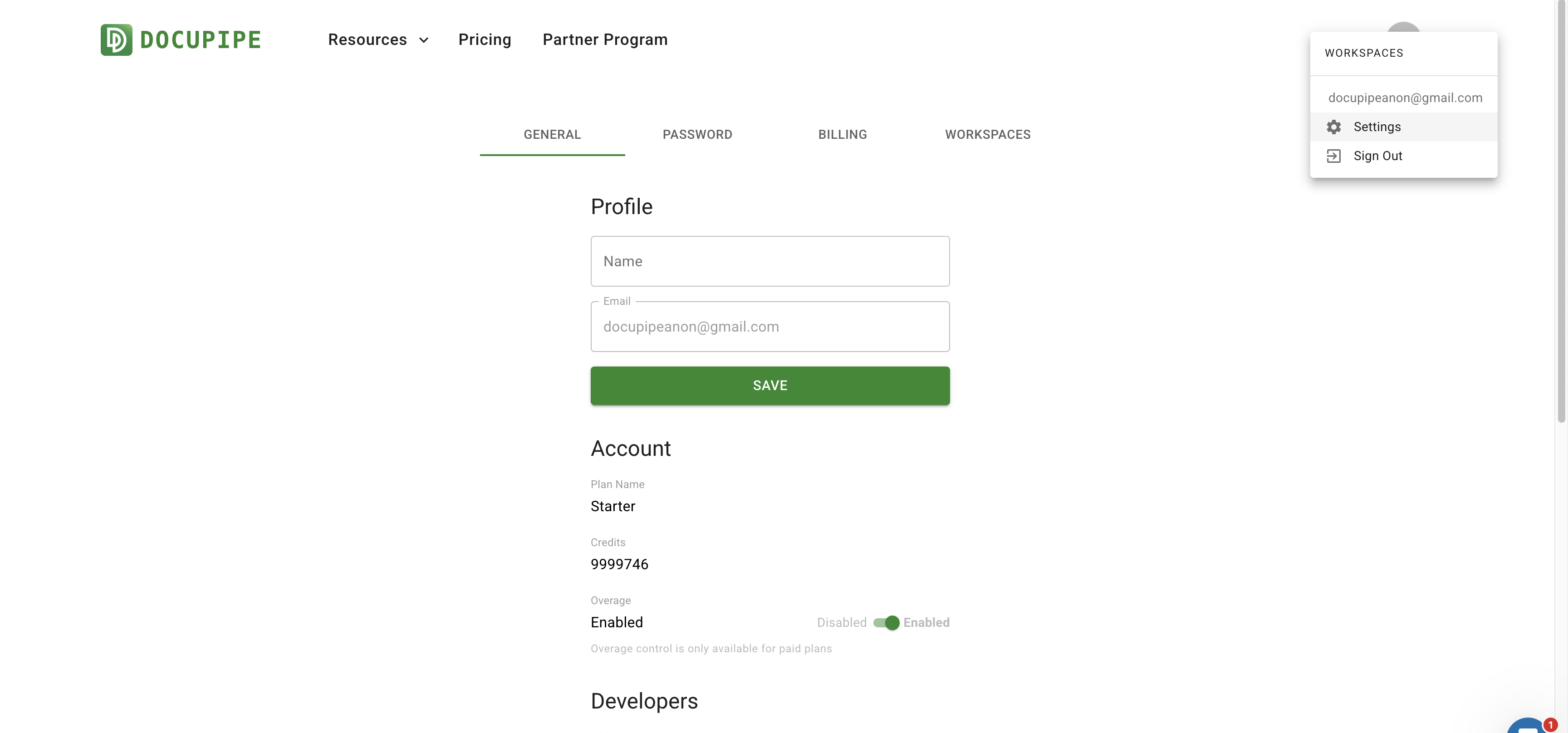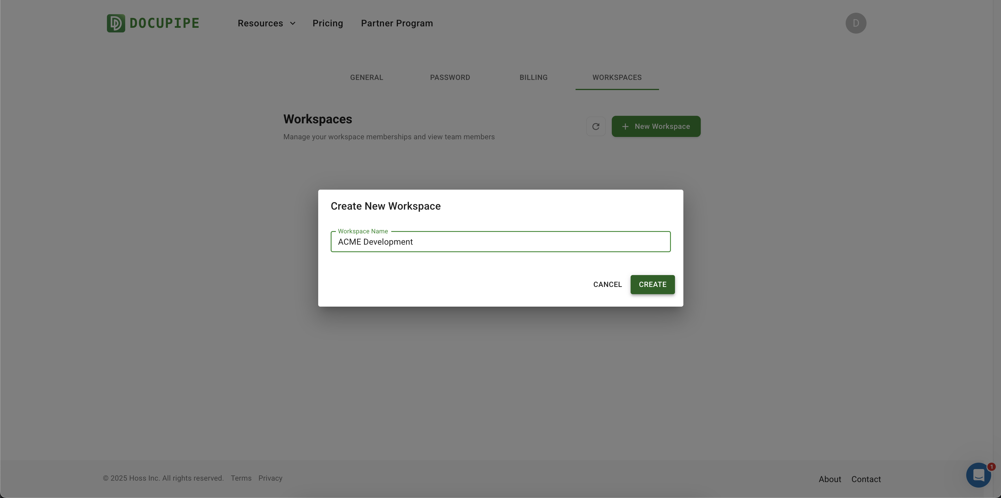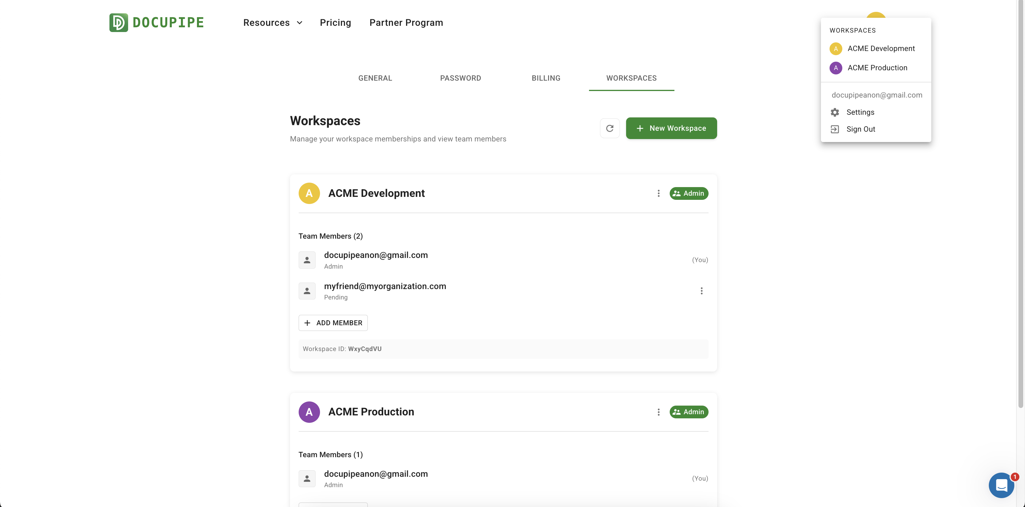 When you create a Workspace, it will have its own API key. Any member of that Workspace can see all documents, standardizations, schemas, or any other objects created in it.